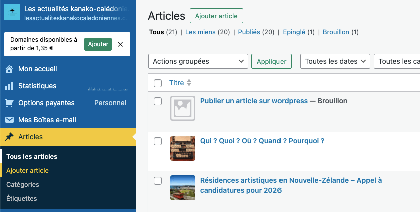Après avoir ouvert la plateforme wordpress, cliquer sur ajouter dans la rubrique article