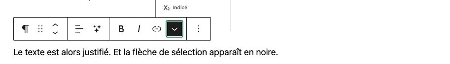 Le texte est alors justifié. Et la flèche de sélection apparaît en noire.