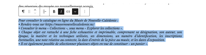 Mettre en italique les liens vers d’autres sources, vers les sources, etc….
