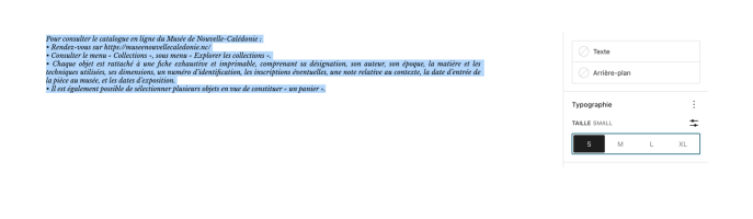Puis sélectionner dans typographie, la taille de la police S (small).